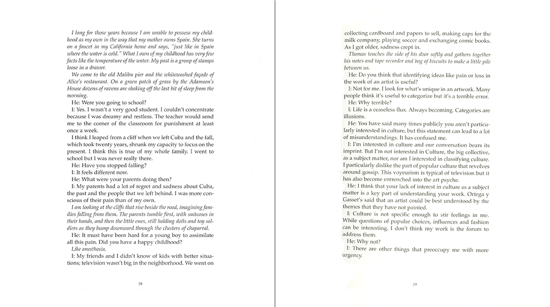 Guide, part meditation and part fiction, addresses some of Enrique Martínez Celaya’s questions and thoughts about the meaning and purpose of art and its connection to life and values. The book is structured as a conversation between an old Franciscan and the artist as they drive north on the Pacific Coast Highway.